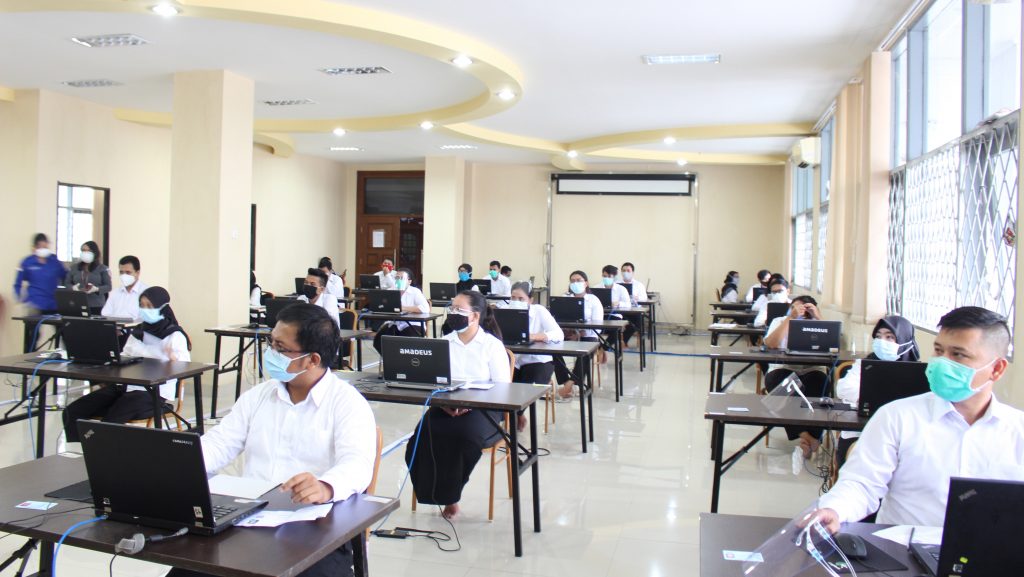 Pelaksanaan SKB ini sempat tertunda beberapa bulan akibat pandemi Covid-19. Dan sebagai upaya pencegahan serta penerapan protokol kesehatan, seluruh peserta yang mengikuti ujian diwajibkan memakai masker yang menutupi hidung dan mulut hingga dagu. Sebelum memasuki lokasi ujian, peserta diwajibkan mencuci tangan, dan dicek terlebih dahulu suhu tubuhnya. Hasil pengecekan, suhu tubuh peserta yang hadir di bawah batas 37°C dan diperbolehkan mengikuti ujian. Susunan meja juga dibuat lebih berjarak satu dengan lainnya.