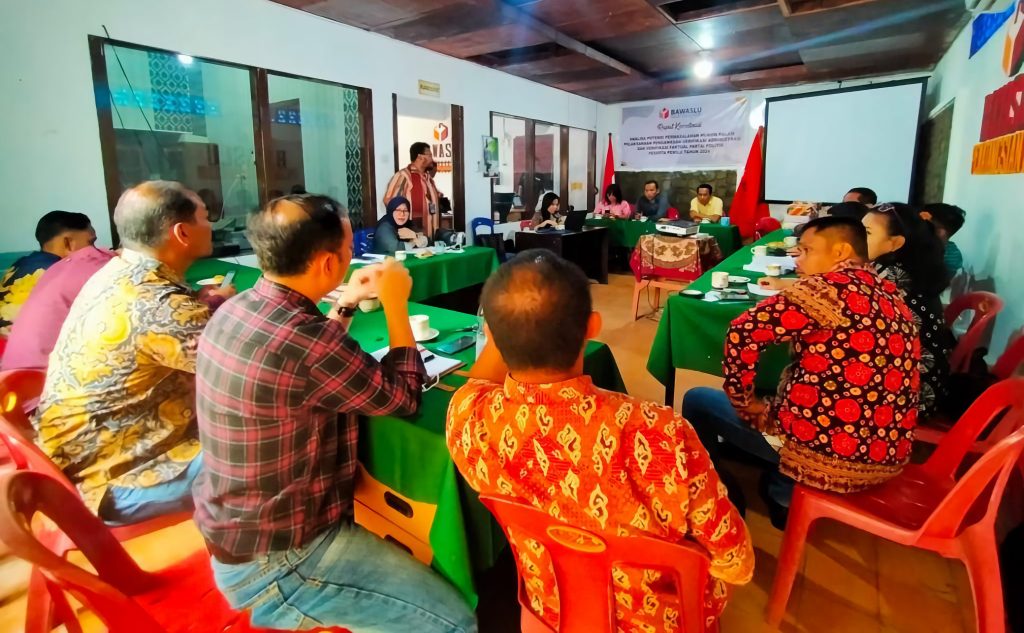 Peserta yang berasal dari 14 orang Bawaslu Kabupaten/Kota dari 17 orang Bawaslu Kabupaten Kota yang terundang masing-masing menyampaikan situasi dan kondisi yang dialami saat melakukan pengawasan Verifikasi administrasi di KPU Kabupaten/Kota masing-masing.