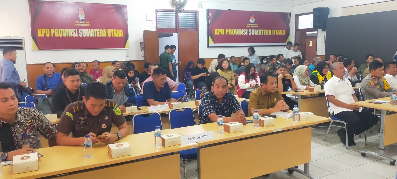 Bawaslu Provinsi Sumatera Utara–Komisi Pemilihan Umum Provinsi Sumatera Utara menggelar Rapat Pleno Terbuka penetapan perolehan kursi partai politik dan penetapan calon terpilih anggota Dewan Perwakilan Rakyat Daerah (DPRD) Provinsi Sumatera Utara dalam Pemilihan Umum (Pemilu)Serentak T ahun 2024. Bertempat, di Aula Kantor KPU Provinsi Sumatera Utara, Selasa (28/5/2024).