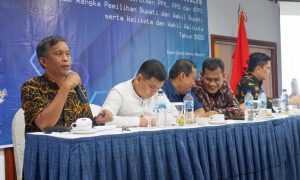 Medan, Bawaslu Sumut - Bawaslu Kabupaten/Kota mengawasi pembentukan Panitia Pemilihan Kecamatan (PPK), Panitia Pemungutan Suara (PPS) dan Kelompok Penyelenggara Pemungutan Suara (KPPS) pada Pilkada Serentak 2020. Rakor Persiapan Pengawasan Pembentukan PPK, PPS dan KPPS Pilkada serenta tahun 2020 diikuti 23 Bawaslu Abupaten/Kota di Sumut.