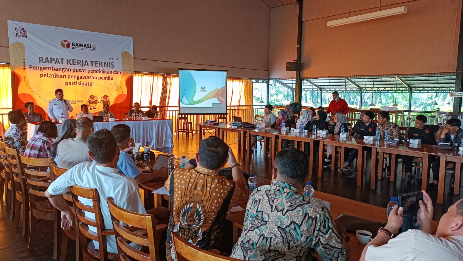 Romson Poskoro Purba memberikan Sambutan Kepada Peserta Rapat Kerja Teknis Pengebangan Pusat Pendidikan dan Pelatihan Pengawasan Pemilu Partisipatif Jumat, 2/2/2024.[/caption]