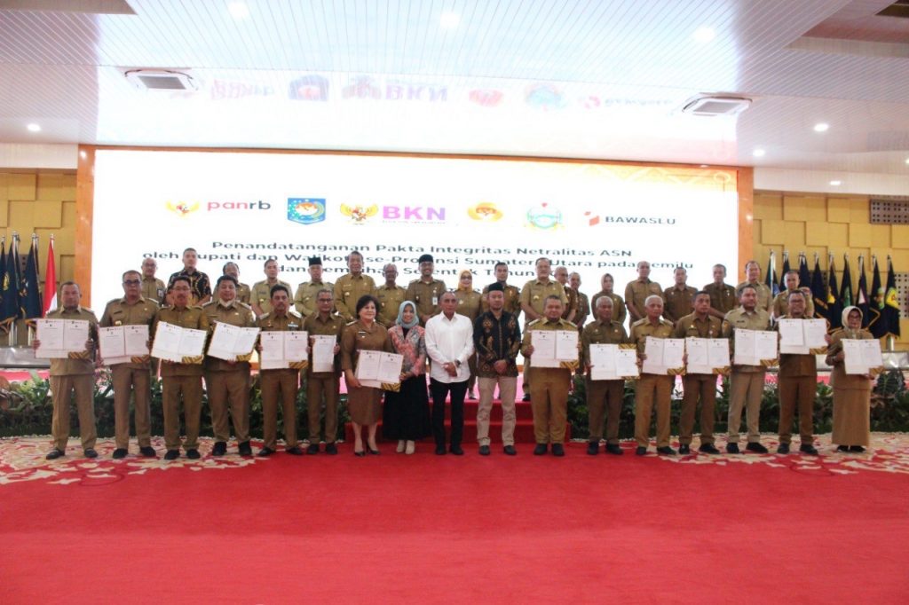 Bawaslu Sumut Adakan Penandatanganan Pakta Integritas Netralitas ASN oleh Bupati dan Walikota se-Provinsi Sumatera Utara pada Pemilu dan Pemilihan Serentak Tahun 2024