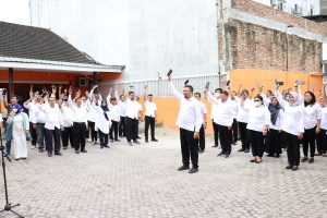 Medan, Bawaslu Sumut - Bertempat di halaman Kantor, Bawaslu Sumut gelar apel siaga pengawasan jelang satu tahun menuju Pemilu 2024, Selasa (14/02/2023).