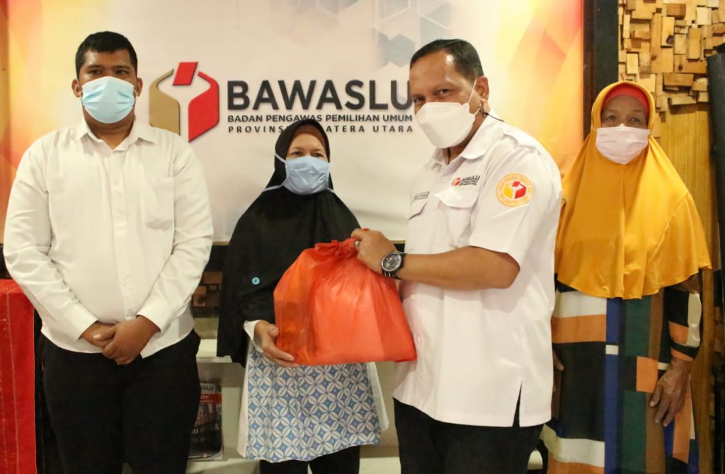 Kegiatan bakti sosial ini disampaikan Bawaslu Sumut dalam bentuk paket sembako dengan sasaran penerima yakni pedagang kaki lima, penarik becak, petugas kebersihan di jalan dan driver ojek online.