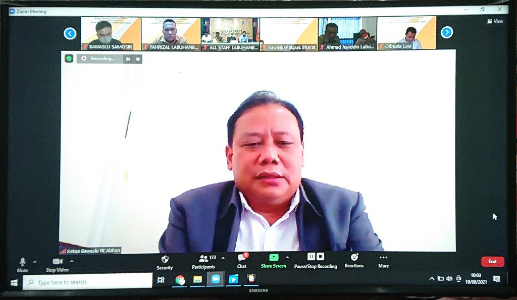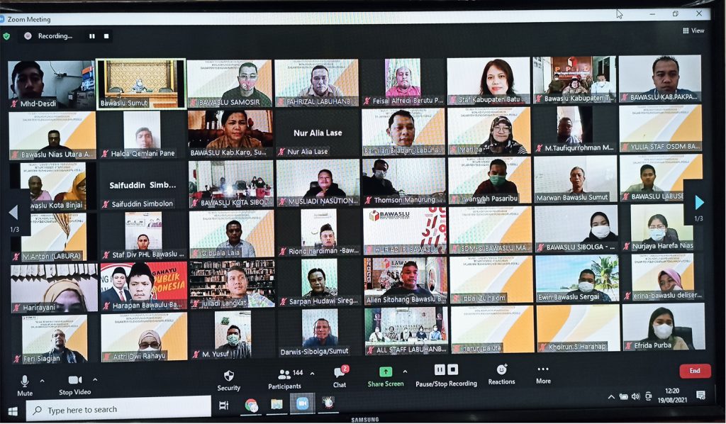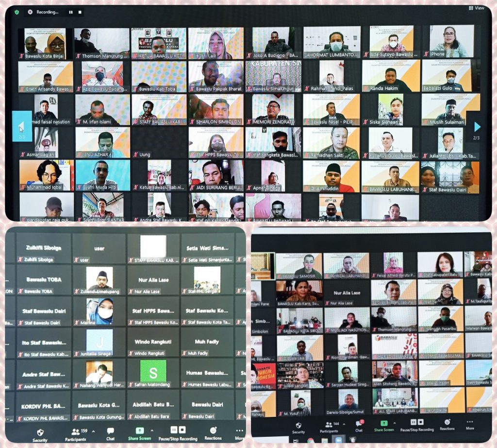 Medan, Bawaslu Sumut –Dalam rangka persiapan pelaksanaan Pemilu serentak 2024, Badan Pengawas Pemilu (Bawaslu) Provinsi Sumatera Utara telah mengadakan kegiatan Rapat Koordinasi (Rakor) Telaah fungsi pengawasan menjadi fungsi penindakan dalam penyelenggaraan pengawasan Pemilu yang diikuti oleh Bawaslu di 33 Kab/Kota se-Sumatera Utara yang dilaksanakan secara virtual dari Kantor Sekretariat Bawaslu Sumut, Kamis, (19/8/2021).