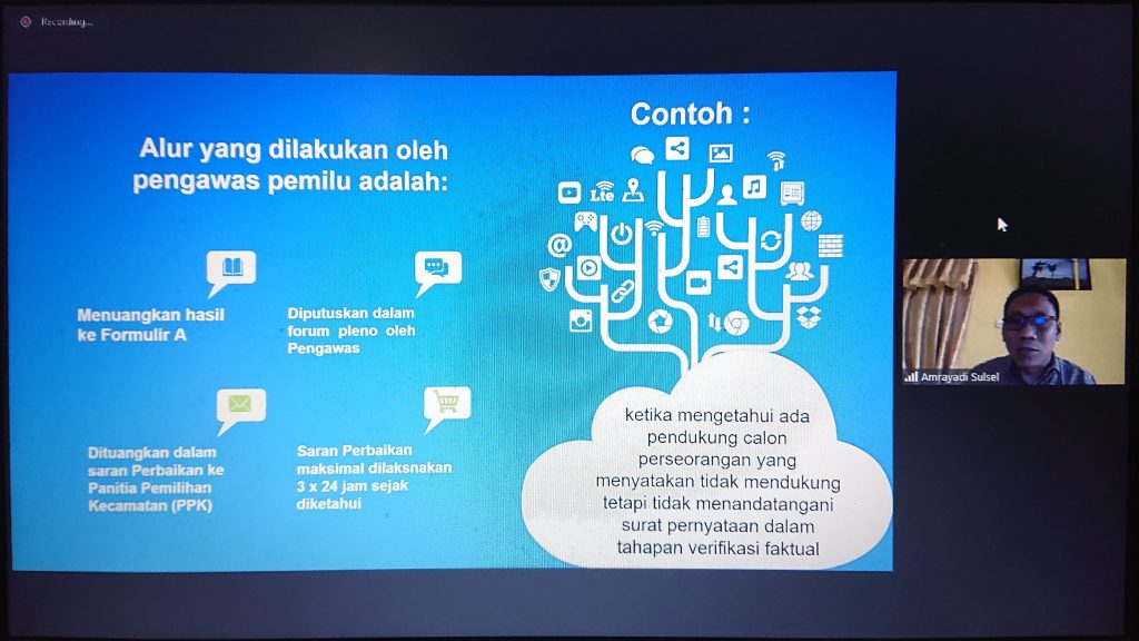 Selain mengundang Ketua Bawaslu RI sebagai pembicara utama, narasumber lainnya pada kegiatan ini adalah Koordinator Divisi Penanganan Pelanggaran Bawaslu Sulawesi Selatan DR. Azry Yusuf, dan Koordinator Divisi Pengawasan Bawaslu Sulawesi Selatan Amrayadi. Dalam paparannya kedua Narasumber berbagi pengalaman terkait strategi pengawasan dan penanganan pelanggaran yang dilakukan di Bawaslu Sulawesi Selatan.