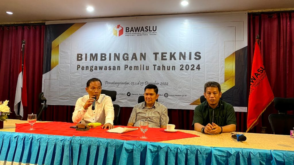 Bimtek Pengawasan Pemilu 2024 ini dilaksanakan dengan tujuan meningkatkan teknis pengawasan bagi Bawaslu Kabupaten/Kota se-Sumut sebagai persiapan pengawasan tahapan Pemilu 2024.