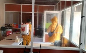 Adapun area yang dilakukan penyemprotan adalah seluruh ruangan kerja, ruang sidang/rapat, kantin, dan juga mushola.
