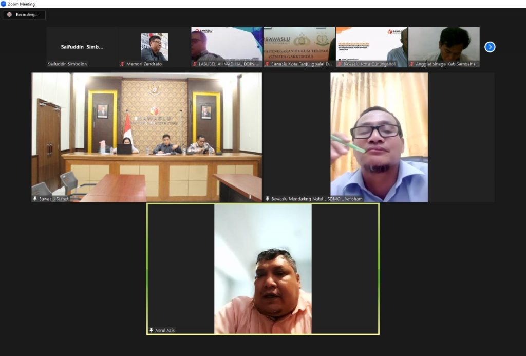 Medan, Bawaslu Sumut – Secara daring, Divisi Sumber Daya Manusia dan Organisasi Bawaslu Sumut mengundang seluruh Kordinator Divisi SDMO Bawaslu Kabupaten/Kota serta Kepala Sekretariat/Koordinator Sekretariat dalam giat rapat koordinasi dan evaluasi pelaksanaan tugas-tugas Divisi SDMO Bawaslu Kabupaten/Kota pada Selasa (13/12/2022).