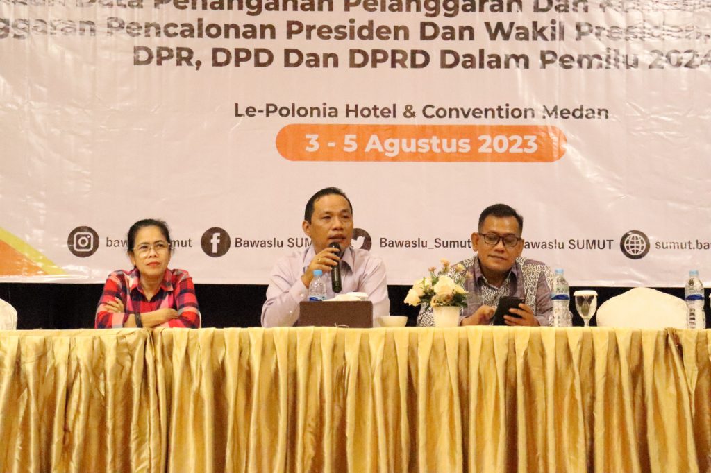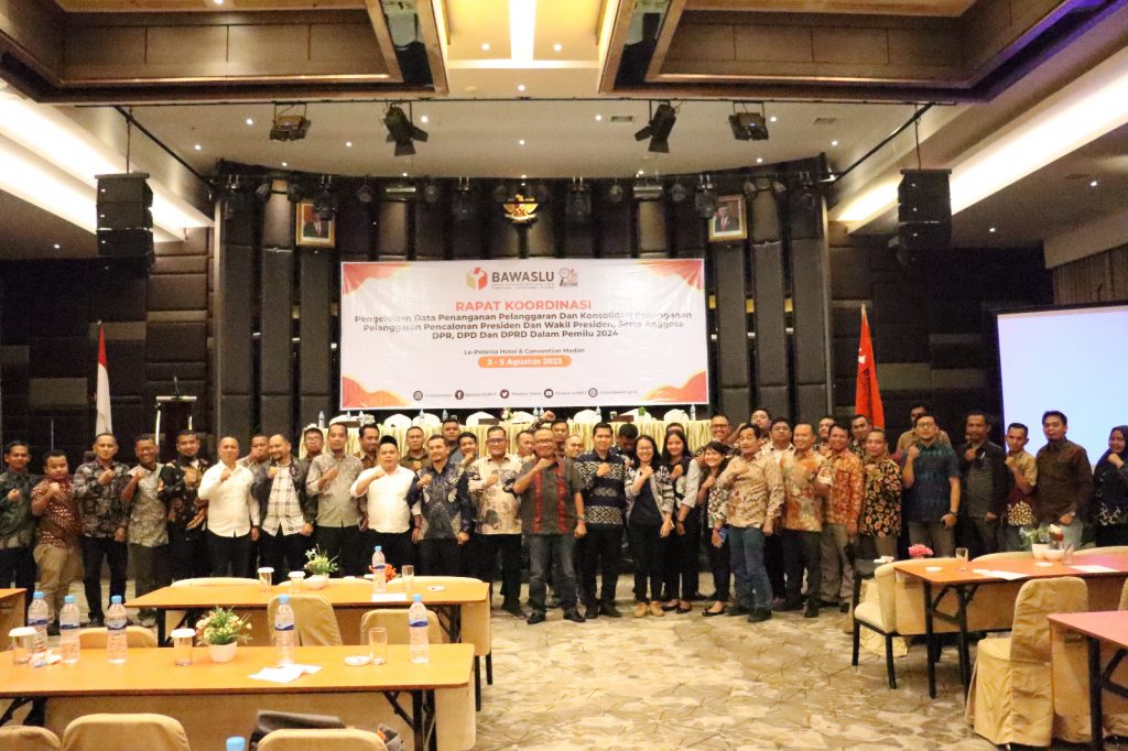 Medan, Bawaslu Sumut - Sehubungan pentingnya pengelolaan data pelanggaran dan manajemen strategis penanganan pelanggaran, Bawaslu se-Provinsi Sumatera Utara dalam tahapan pencalonan Presiden dan Wakil Presiden serta Pencalonan anggota DPR, DPD, dan DPRD dalam pemilu serentak tahun 2024 mengadakan Rapat Kordinasi di Le-Polonia Hotel, pada Kamis (03/08/2023).