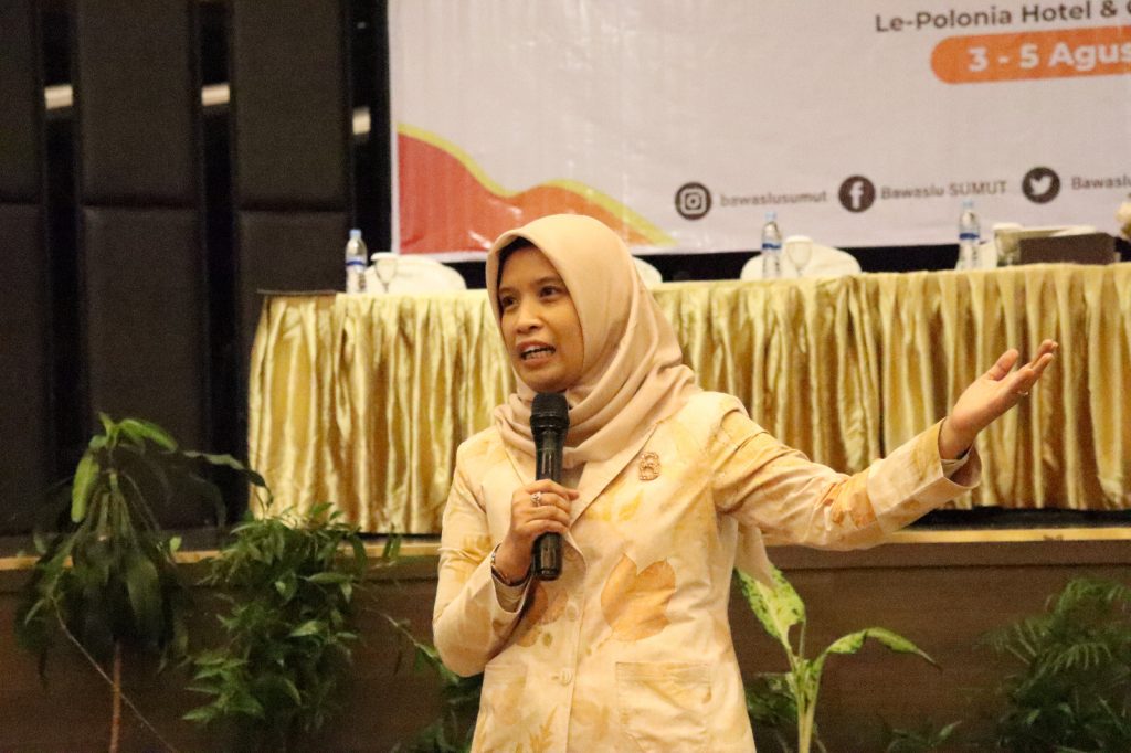 Dalam kegiatan ini hadir sebagai narasumber yaitu Ketua dan Anggota Bawaslu Provinsi Sumatera Utara Periode 2018 - 2023 Syafrida R Rasahan, Herdi Munte dan Henry Sitinjak.
