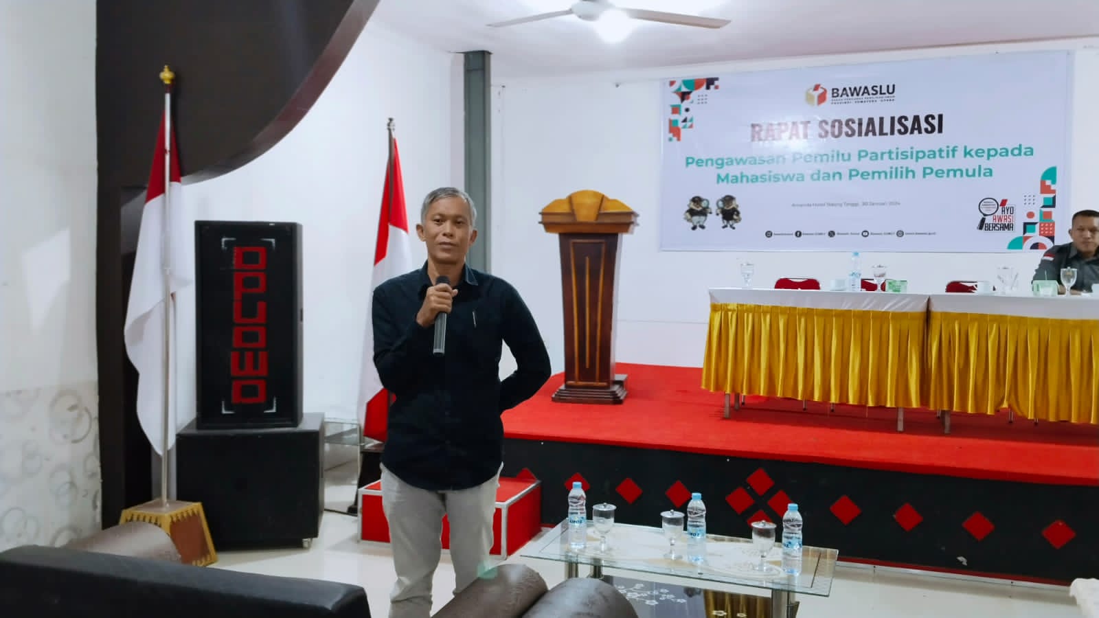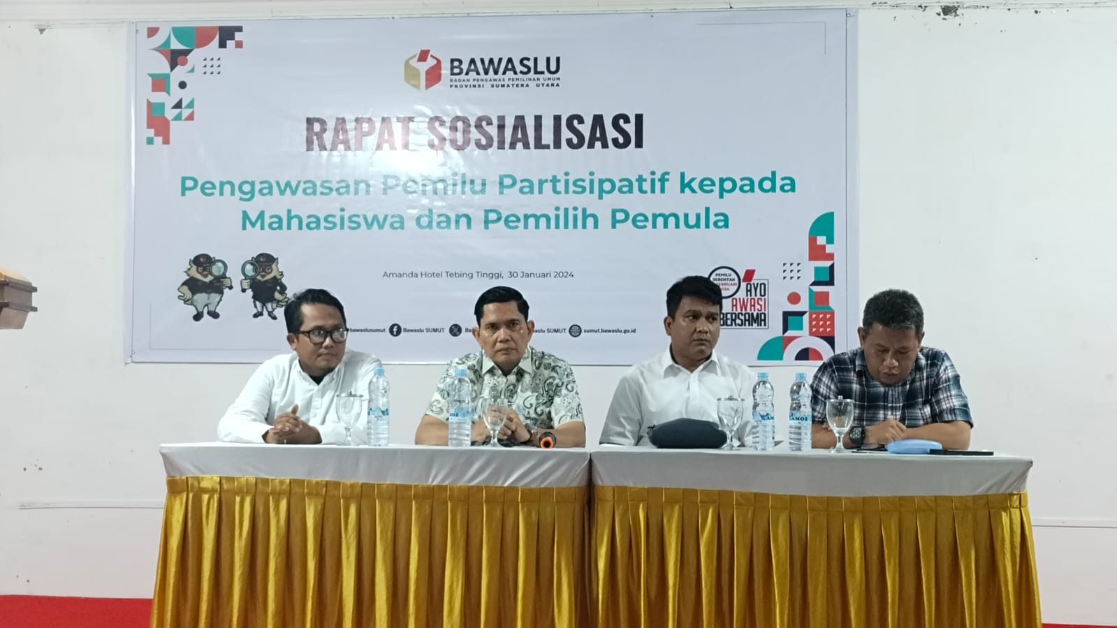 Tebing Tinggi, Bawaslu Sumut-Lima belas hari menjelang hari Pemungutan Suara Pemilu (14/02/2024), Bawaslu Sumut terus melakukan berbagai upaya untuk melibatkan masyarakat dalam pengawasan pemilihan. Salah satu program yang dilakukan yaitu Sosialisasi Pengawasan Partisipatif kepada mahasiswa dan pemilih pemula di Kota Tebing Tinggi pada Selasa (30/01/2024).
