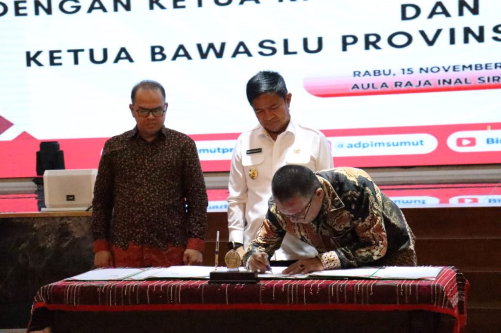 Ketua Bawaslu Sumut Hadiri Penandatanganan NPHD Pemilihan Gubernur Sumatera Utara Tahun 2024