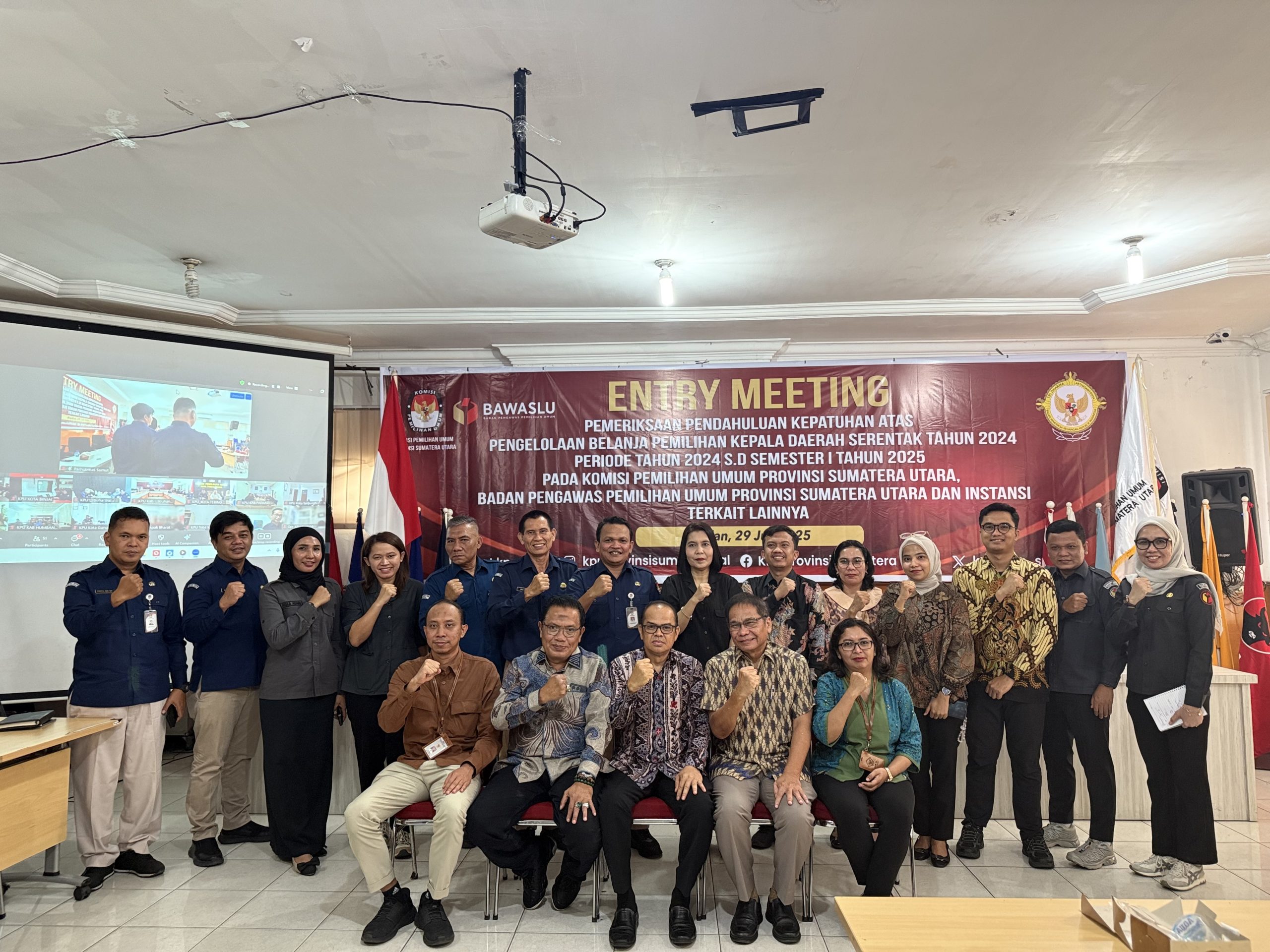 Medan, Bawaslu Sumut-Ketua Bawaslu Sumut M. Aswin Diapari Lubis menghadiri undangan dari Badan Pemeriksa Keuangan Republik Indonesia (BPK RI) Perwakilan Provinsi Sumut dalam Pemeriksaan Pendahuluan Kepatuhan atas Pengelolaan Belanja Pilkada Serentak Tahun 2024 Periode Tahun 2024 s.d. Semester I 2025 di Kantor KPU Provinsi Sumut, Selasa (29/07/2025).