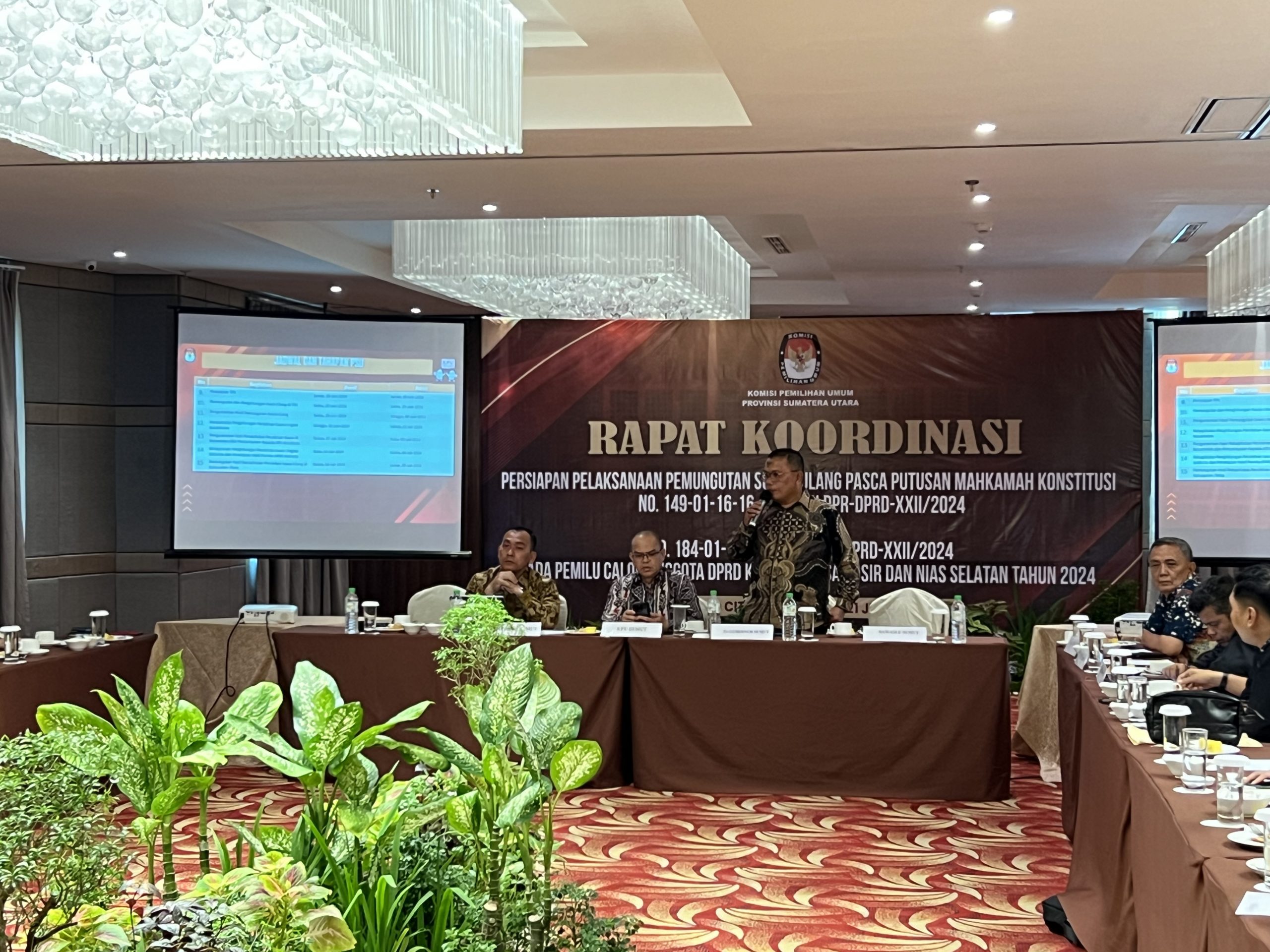 Medan,21/06/2024, Ketua Bawaslu Sumut M. Aswin Diapari Lubis Menghadiri Rapat Koordinasi yang diselenggarakan KPU Provinsi Sumatera Utara yang didampingi Plt.Kepala Bagian Hukum, Humas dan Datin Bawaslu Provinsi Sumatera Utara Amir Hamzah.