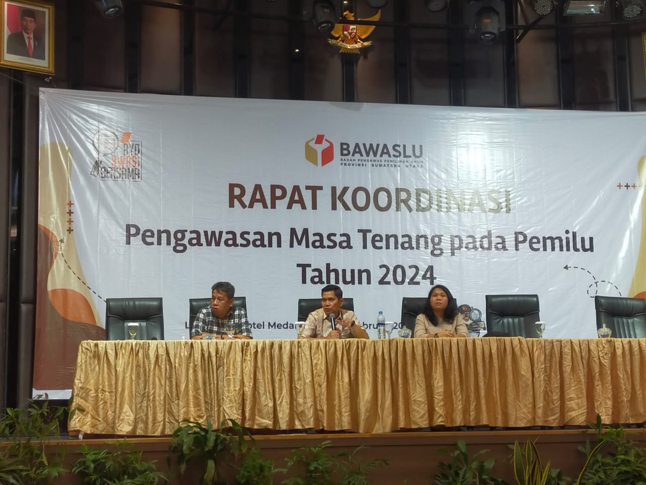 Medan_Bawaslu Sumut- Tinggal menghitung hari menuju masa tenang pemilu 2024, Bawaslu Sumut meminta jajaran untuk melakukan pengawasan dalam rangka pencegahan pelanggaran yang terjadi.