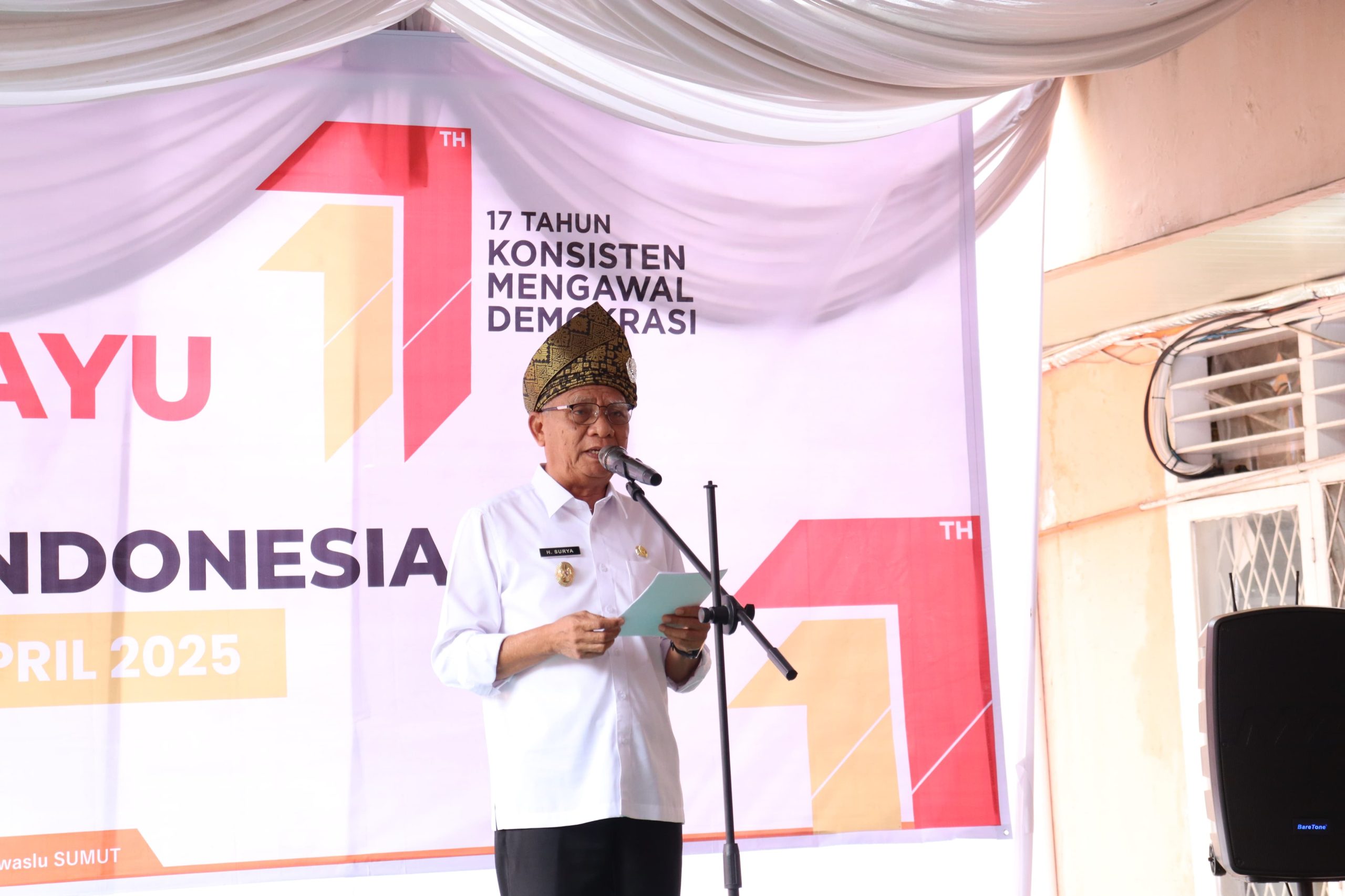 Mewakili Gubernur Sumatera Utara Bobby Nasution, Wakil Gubernur (Wagub) Sumatera Utara (Sumut) Surya menyampaikan komitmen pemerintah Provinsi Sumatera Utara untuk mewujudkan ekosistem demokrasi yang sehat dan berintegritas.
