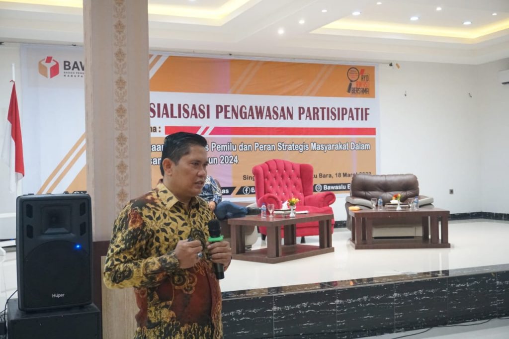 "Bahwa tugas pengawasan pemilu itu tidak hanya di pundak penyelenggara pemilu yakni KPU, Bawaslu dan DKPP, namun juga menjadi tanggung jawab semua elemen anak bangsa," kata Suhadi diawal pemaparannya saat menjadi narasumber pada kegiatan Sosialisasi Pengawasan Partisipatif yang diselenggarakan Bawaslu Batu Bara di Singapore Land Batu Bara pada Sabtu (18/03/2023).