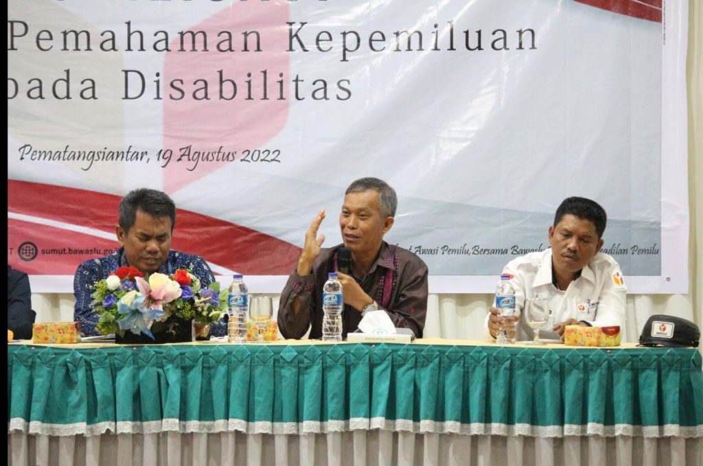 Hal ini diutarakan Anggota Bawaslu Sumut Suhadi Sukendar Situmorang saat memberikan kata sambutan dalam Sosialisasi Penguatan Pemahaman Kepemiluan Kepada Disabilitas yang diselenggarakan oleh Bawaslu Sumut di Siantar Hotel - Pematangsiantar, Jumat (19/8/2022).