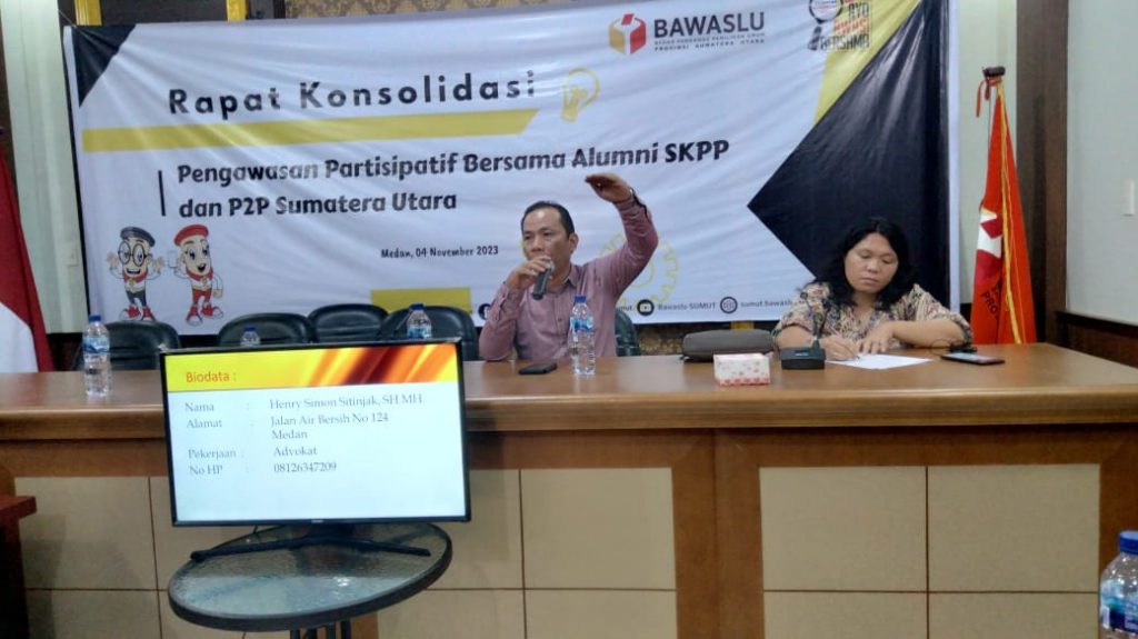 Anggota Bawaslu Sumut Suhadi Sukendar Situmorang menjelaskan bahwa tujuan dilakukannya rapat konsolidasi adalah bagaimana memperkuat pengawasan partisipatif melalui peran alumni SKPP dan P2P Sumut.