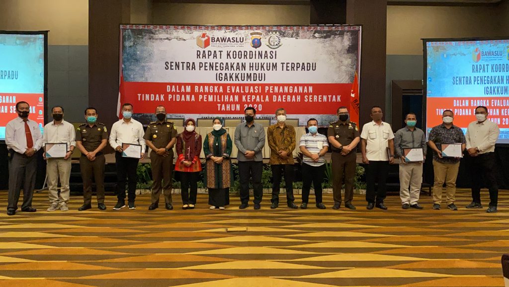 “Pelaksanaan Pemilu Nasional dan Pilkada tahun 2024 tentunya akan menimbulkan beban penegakan hukum yang luar biasa, terutama dalam hal penanganan pelanggaran, juga pada Sentra Gakkumdu sehingga perlu adanya usulan perbaikan regulasi untuk perbaikan pelaksanaannya, terutama terkait jangka waktu penanganan pelanggaran†demikian ungkapnya pada Pembukaan Kegiatan Rakor Sentra Gakkumdu dalam rangka Evaluasi Penanganan Tindak Pidana Pemilihan Kepala Daerah Serentak tahun 2020 yang diselenggarakan di hotel Santika Premier Dyandra Hotel Medan (17/03/2021).