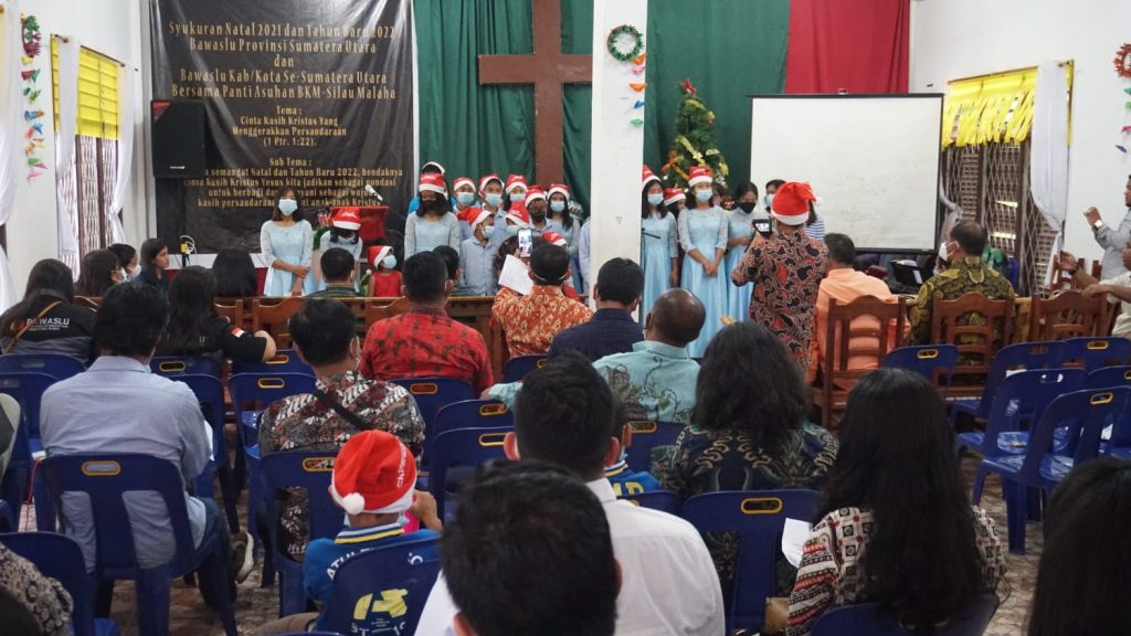 Simalungun, Bawaslu Sumut- Sebagai wujud rasa syukur di tahun 2022, Bawaslu Provinsi Sumatera Utara dan Bawaslu Kabupaten/Kota se-Provinsi Sumatera Utara melaksanakan kegiatan Syukuran Natal 2021 dan Tahun Baru 2022 di Panti Asuhan Bumi Keselamatan Margarita (BKM) Silau Mahala, Simalungun (10/1/2022).
