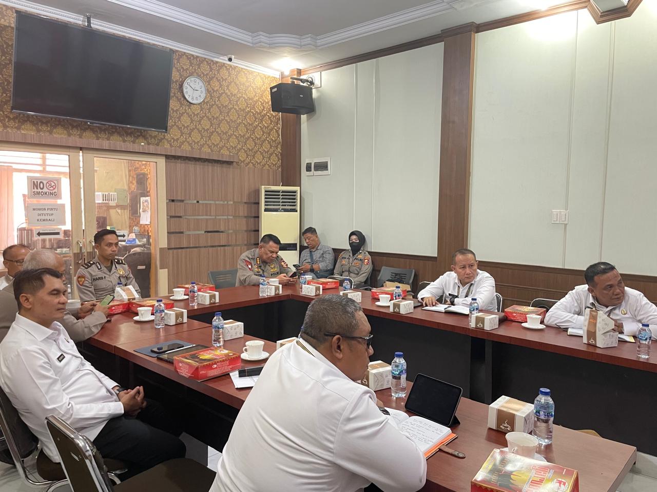 Pimpinan Bawaslu Provinsi Sumatera Utara menerima kunjungan peserta Praktek Kerja Dalam Negeri (PKDN) Sekolah Staf dan Pimpinan Tinggi (Sespimti) Polri tahun 2024 di Ruang Rapat, Kantor Bawaslu Prov. Sumut, Jalan Haji Adam Malik, Medan, Selasa (23/4/2024).