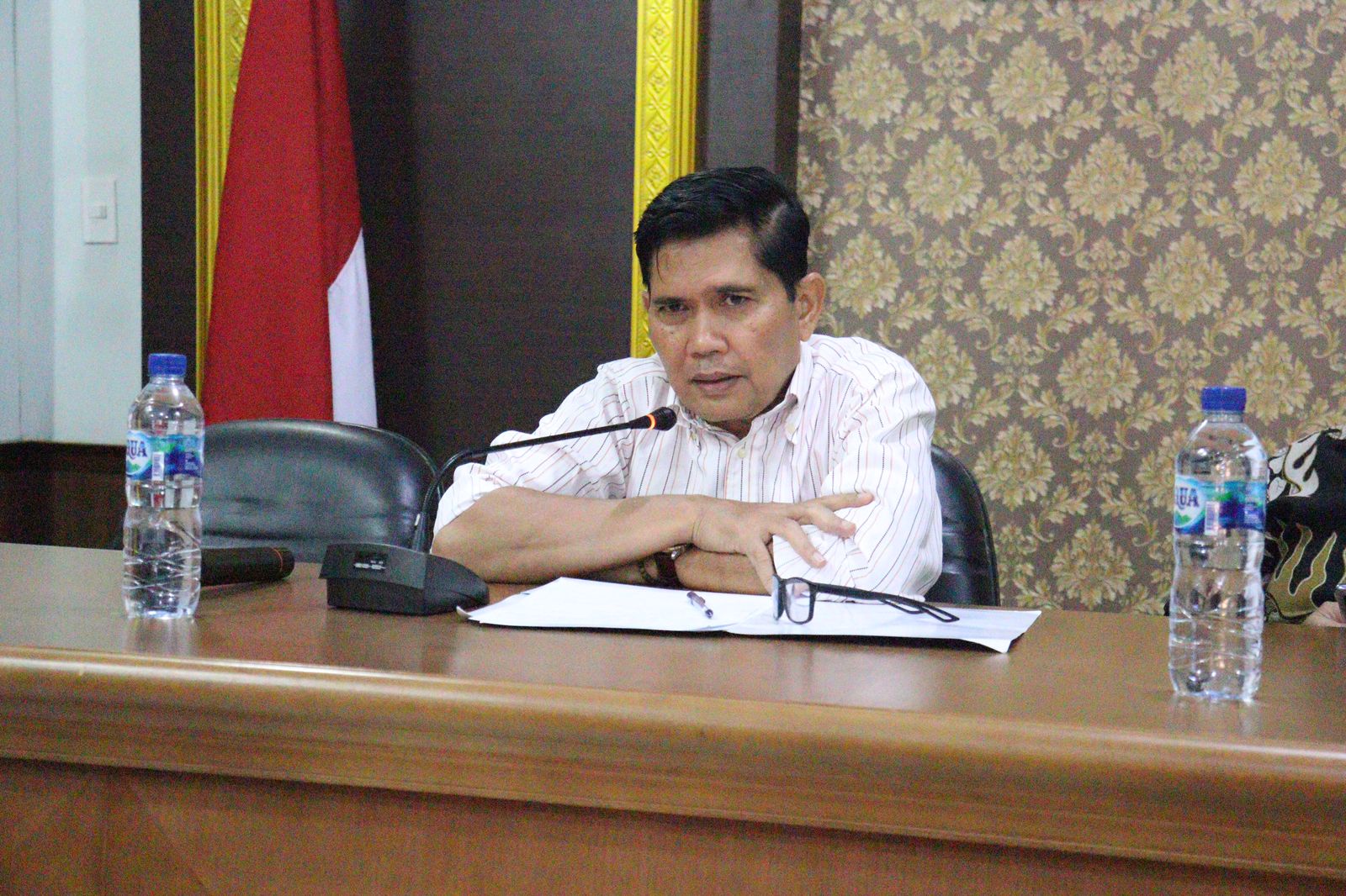 Ketua Bawaslu M. Aswin Diapati Lubis didampingi Anggota Bawaslu sumut Suhadi S. Situmorang dan Kabag Pencegahan Batara Tampubolon menerima kunjungan Civitas Akademikia Universitas Medan Area (UMA) Medan di kantor Bawaslu Sumut, Senin (20/05/2024).